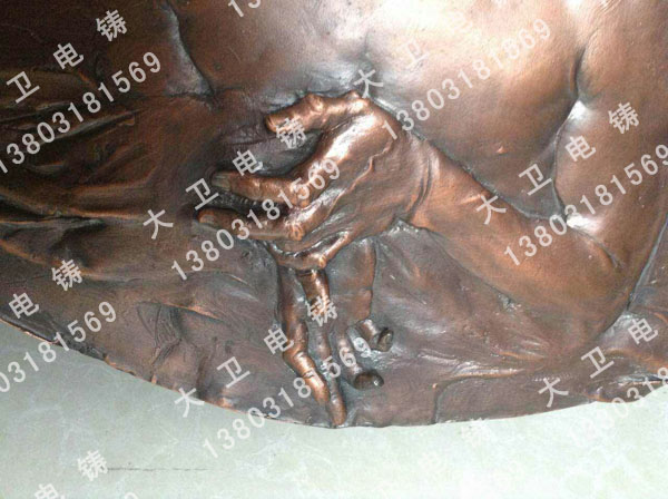 1.材質(zhì): 純紫銅鑄造在材質(zhì)上不會(huì)扯皮,表面效果良好。 2.鑄造工藝 電鑄工藝沒(méi)有砂眼、收縮、氧化皮、縮松等傳統(tǒng)工藝的鑄造缺陷。以及澆道、冒口在雕塑肌理上的橫行霸道。 3.復(fù)制力 因沒(méi)有收縮,可一比一的復(fù)制雕塑作品達(dá)到鑄什么像什么的境界,傳統(tǒng)工藝是達(dá)不到的。 4.平面鑄造 鑄造平面作品更是強(qiáng)項(xiàng),面積最大2m*8m可以整體鑄造。厚度可以均勻掌握到(1mm-8mm)。   聯(lián)系我們
